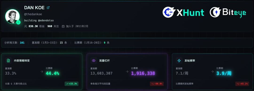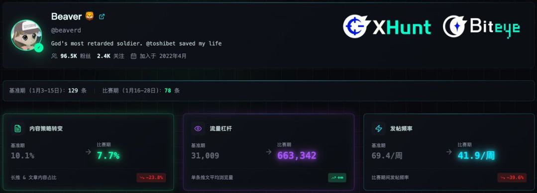为什么一个赛前只有 9.6 万粉丝 的“小号”,能击败拥有百万粉丝的媒体和 KOL?XHunt 数据揭示了他获胜的底层逻辑:他做了 AI 和同行都做不了的“苦功夫”。