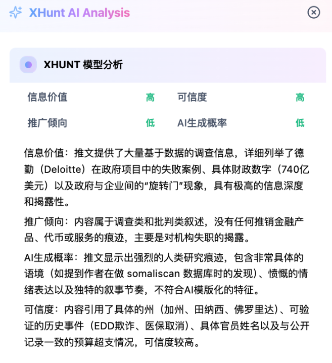@beaverd 的核心竞争力不是文笔,而是他自建了一个能抓取、清洗政府合同和审计报告的数据库。这篇文章本质上是一份数据调查产品。